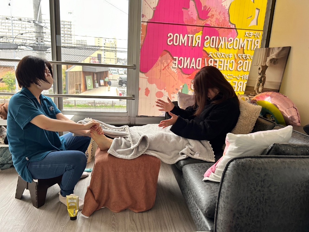Noahスタジオでは恒例の足つぼマッサージがありました。