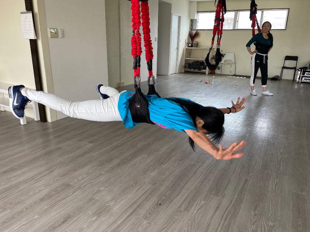 空中からのぶら下がるトレーニング4DPROはパーソナルや2.3人でのセミパーソナルです。丁寧にその方に合ったトレーニングをお伝えします。